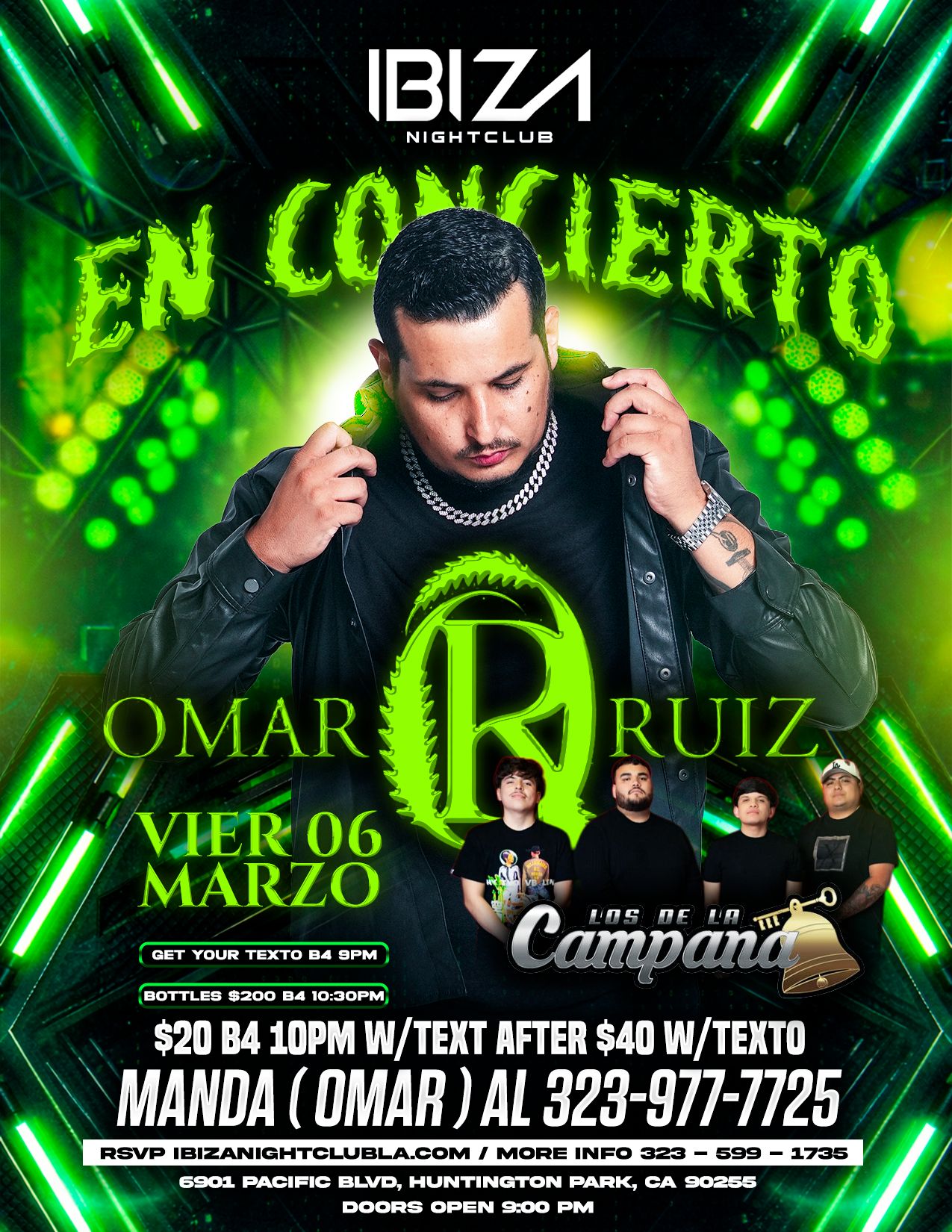 $20 before 10PM and $40 after w/ text. Text “Omar” to 323-997-7725