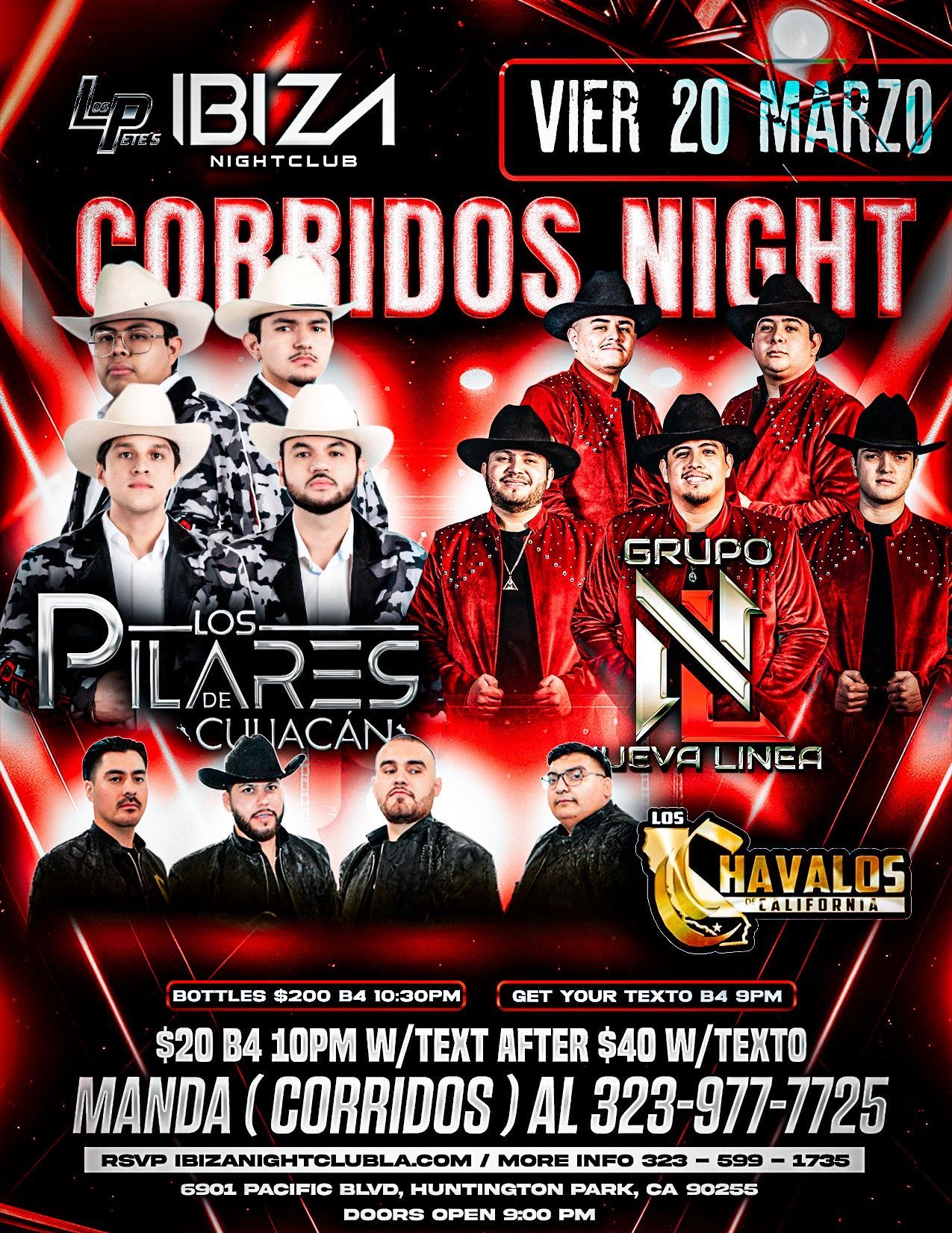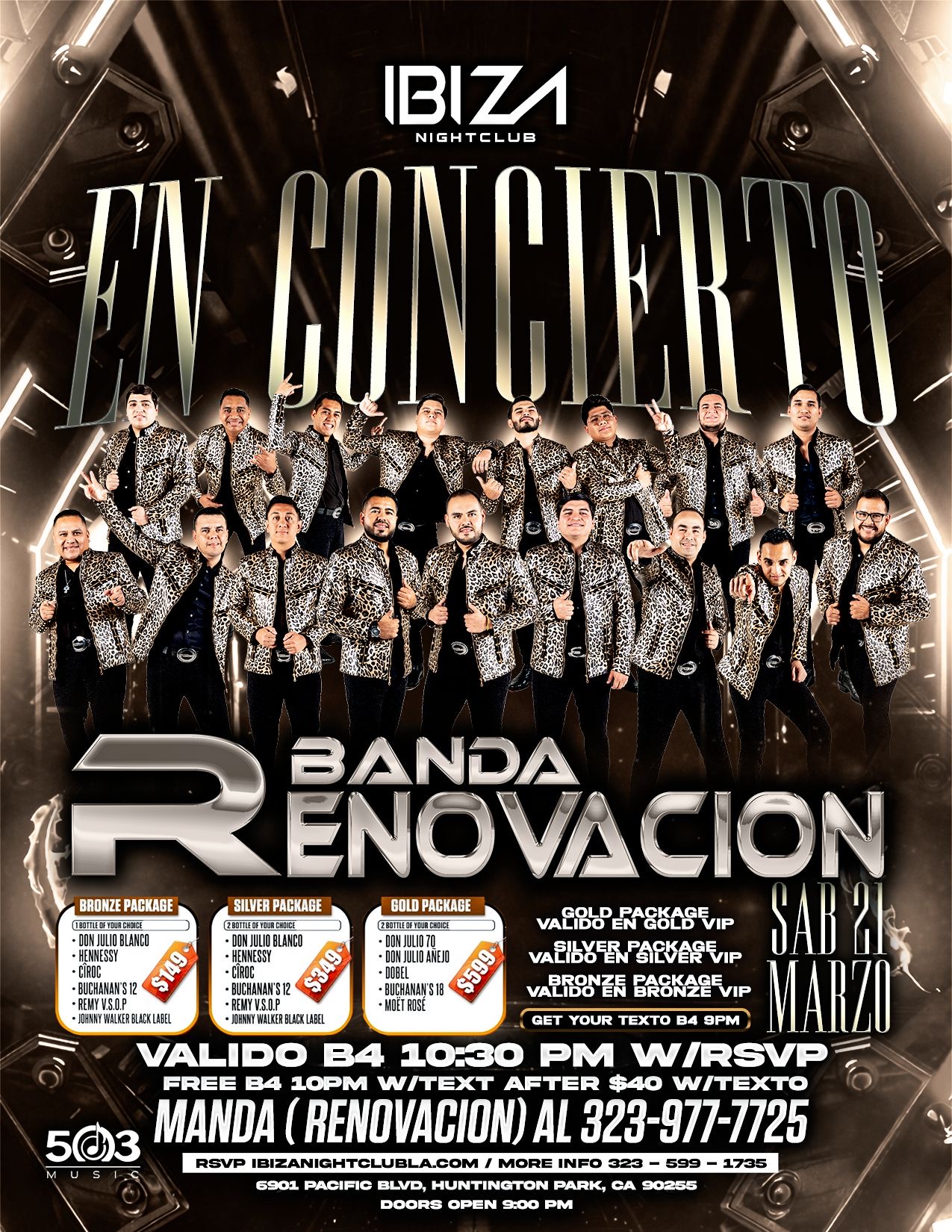 FREE before 10:00pm and $40 after w/text Send “Renovacion” to 323-977-7725